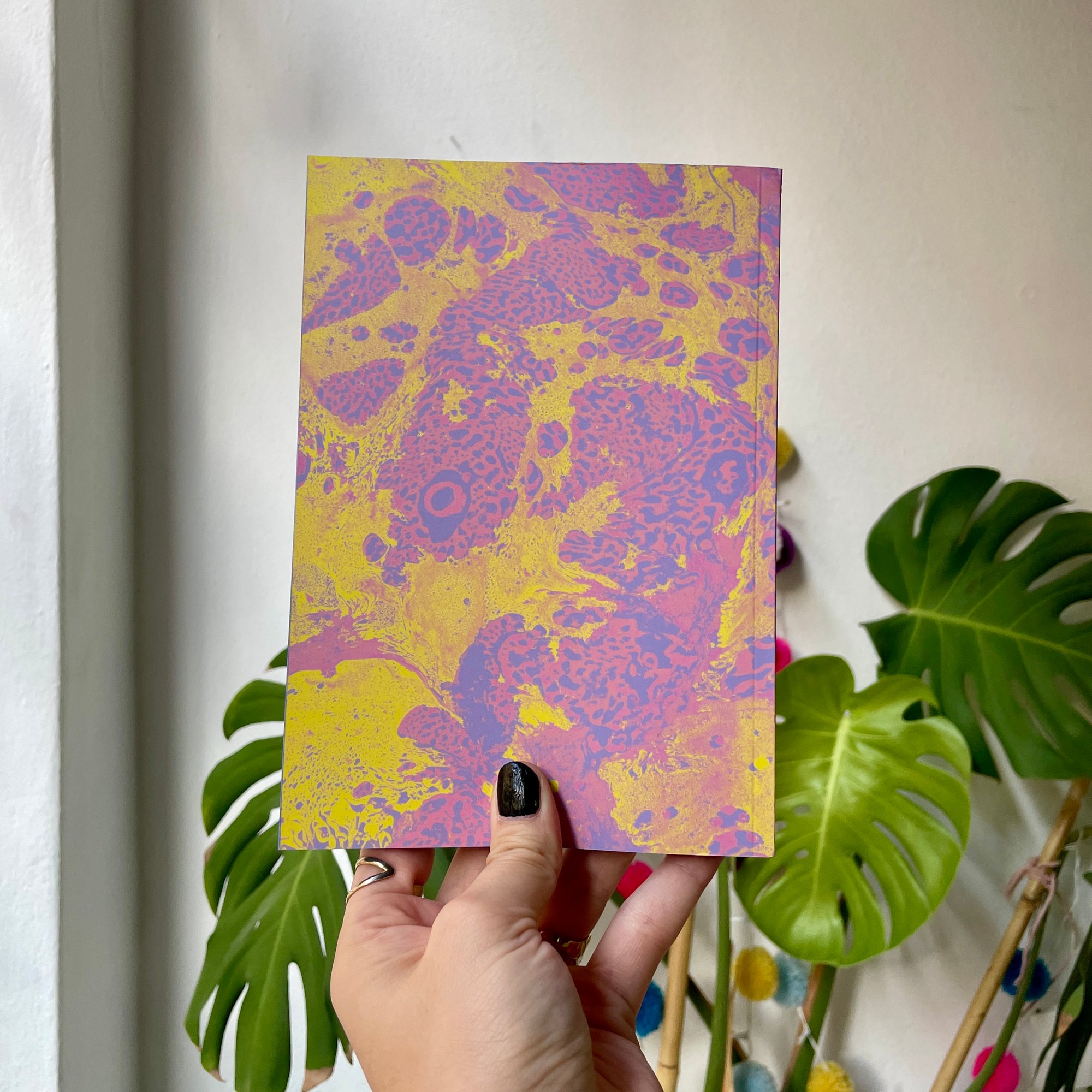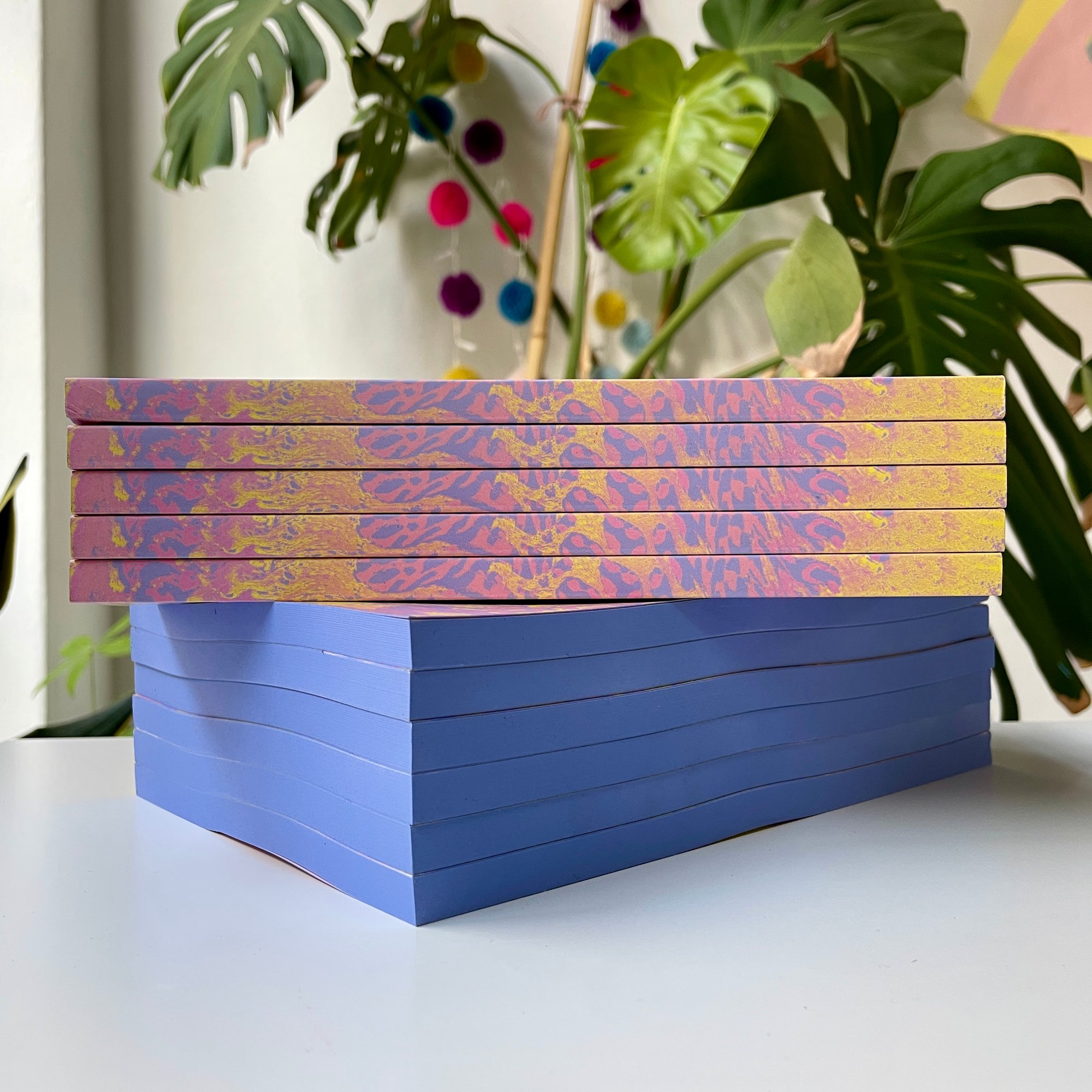 Super cool sketchbooks where the cover is a scan from an original piece of paper marbling made in our studio and the colourful sides are individually painted by hand, in order to give a playful yet elegant look to your book.