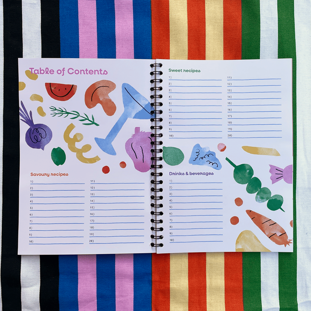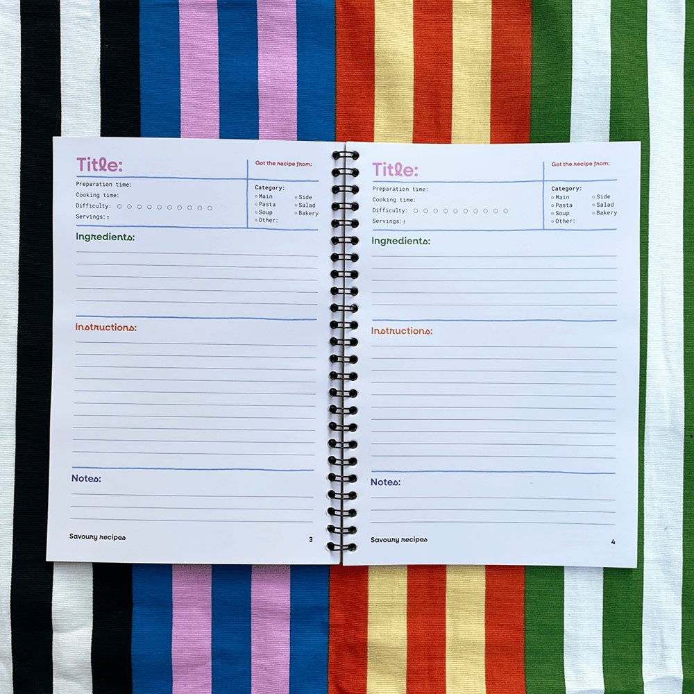 In this book you can host your most precious recipes for savoury and sweet food + drinks! You'll find also a section about tips and tricks for cooking and measuring ingredients and colouring pages to make the wait better when your cake is baking or dough is rising.
